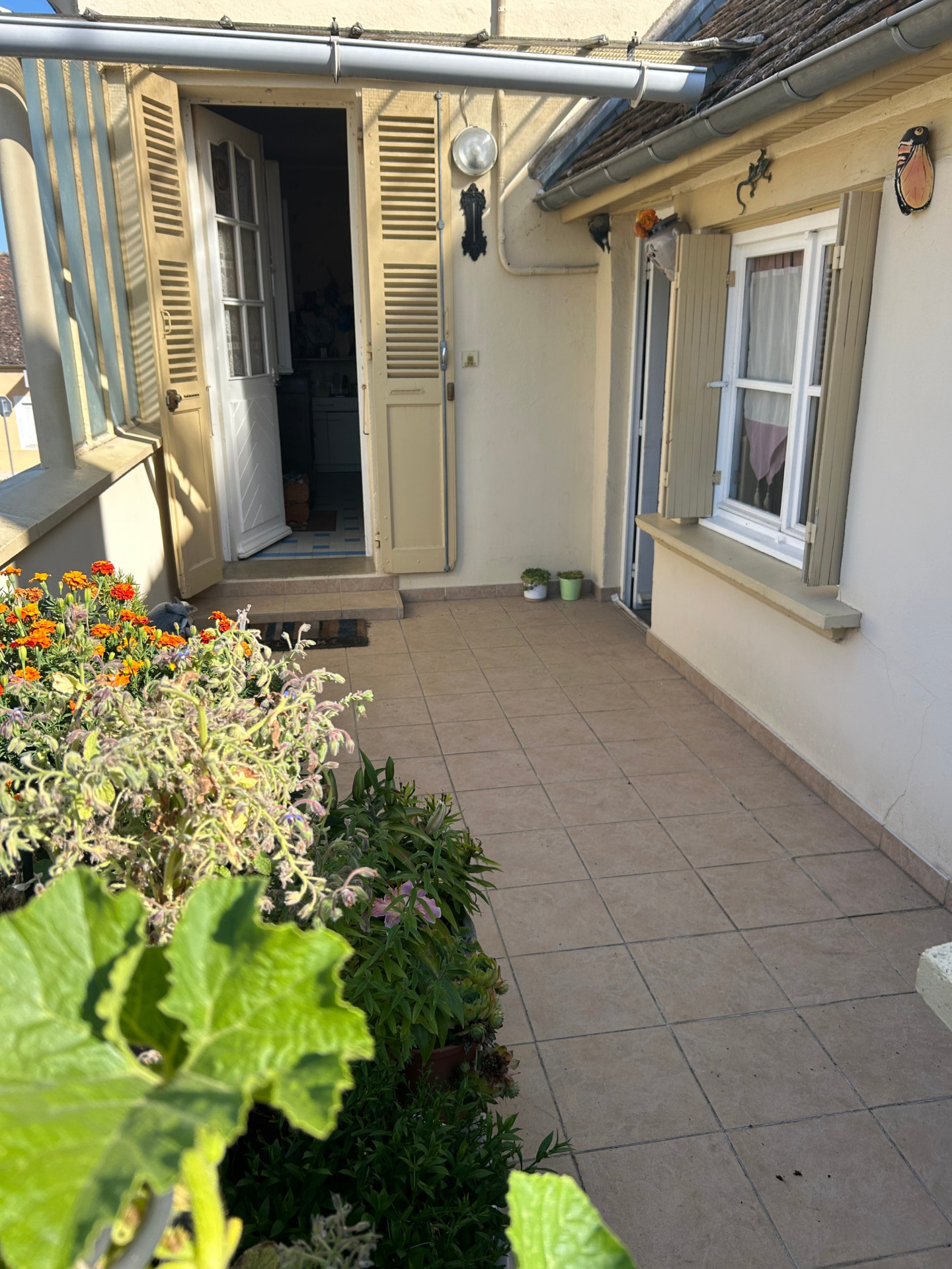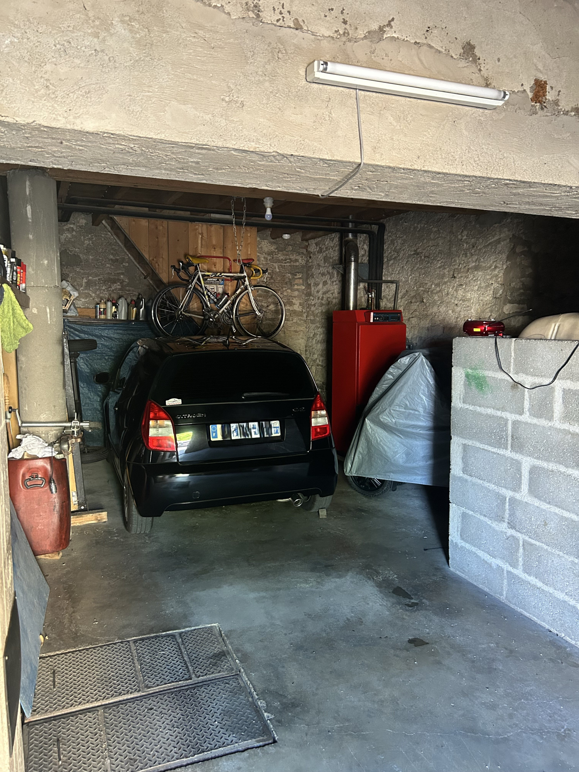 Huisseries simple vitrage bois, tout à l'égout, chaudière fuel, garage, petite terrasse carrelée.