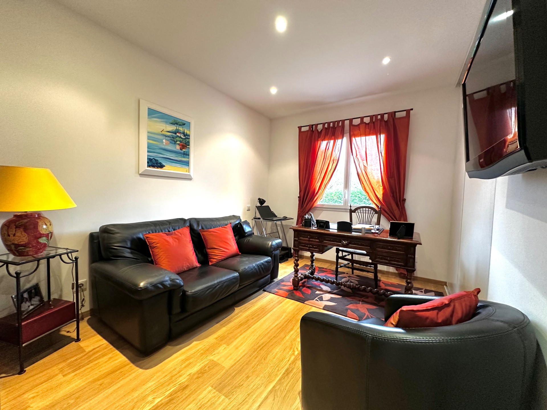 La maison comprend également une chambre indépendante et isolée, ainsi qu'une buanderie carrelée attenante au garage équipé d'une porte motorisée.