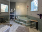 À l'étage, de l'autre côté, correspondant à la tour, à l'emplacement d'une mezzanine accessible depuis le séjour par un escalier design autoportant hélicoïdal, a été aménagée une superbe suite parentale ayant un accès direct à une salle d'eau avec cabine de douche et un second WC.