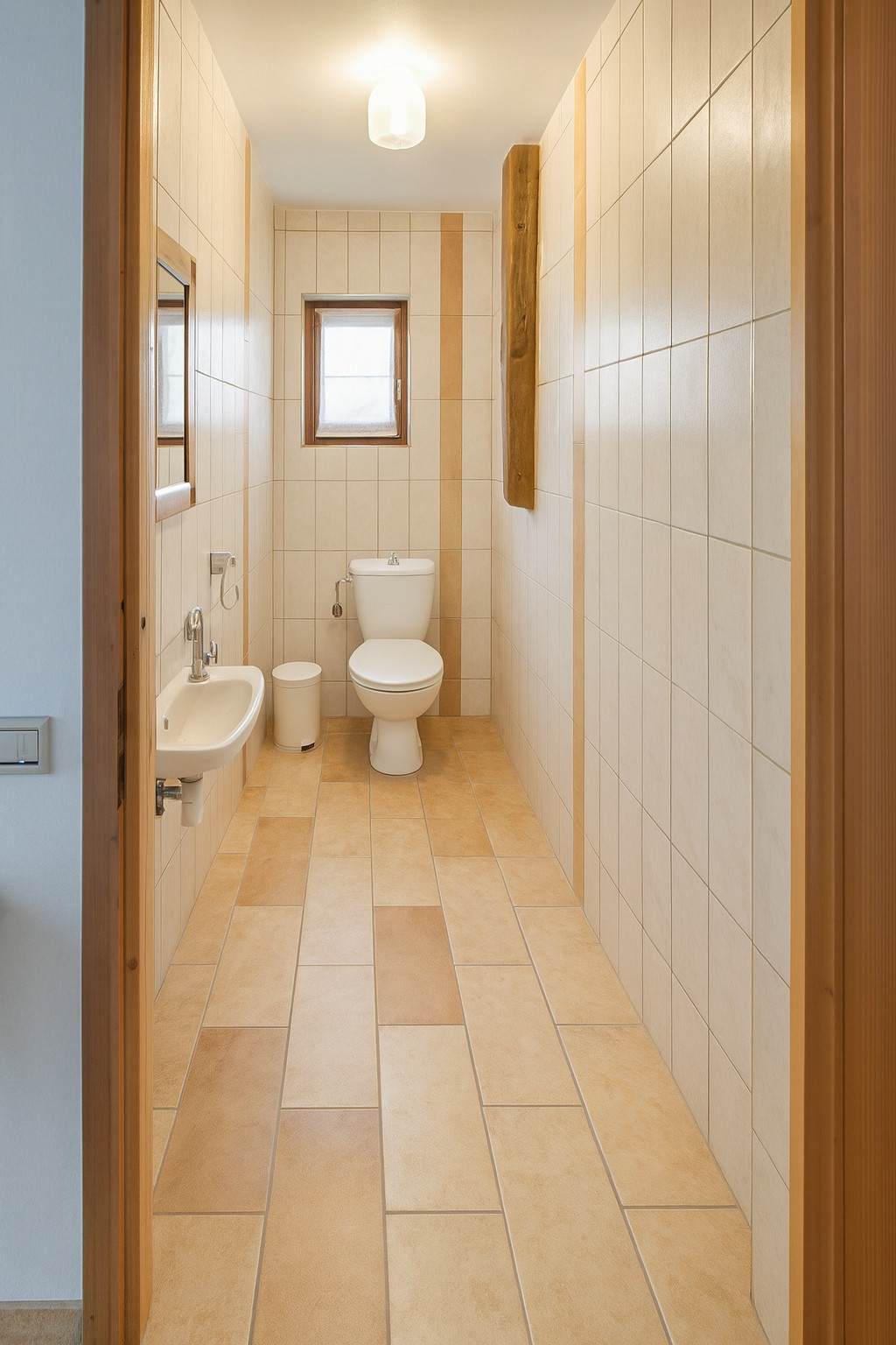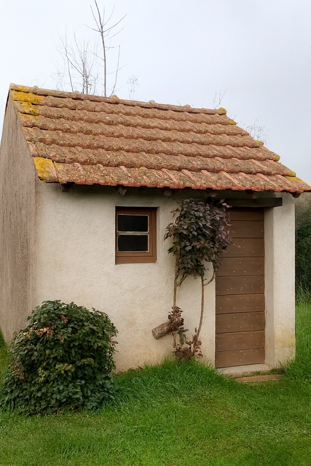 Elle dispose de deux accès, l'un par l'avant donnant dans un sas d'entrée, et l'autre par l'arrière depuis une véranda en dur posée en appentis.