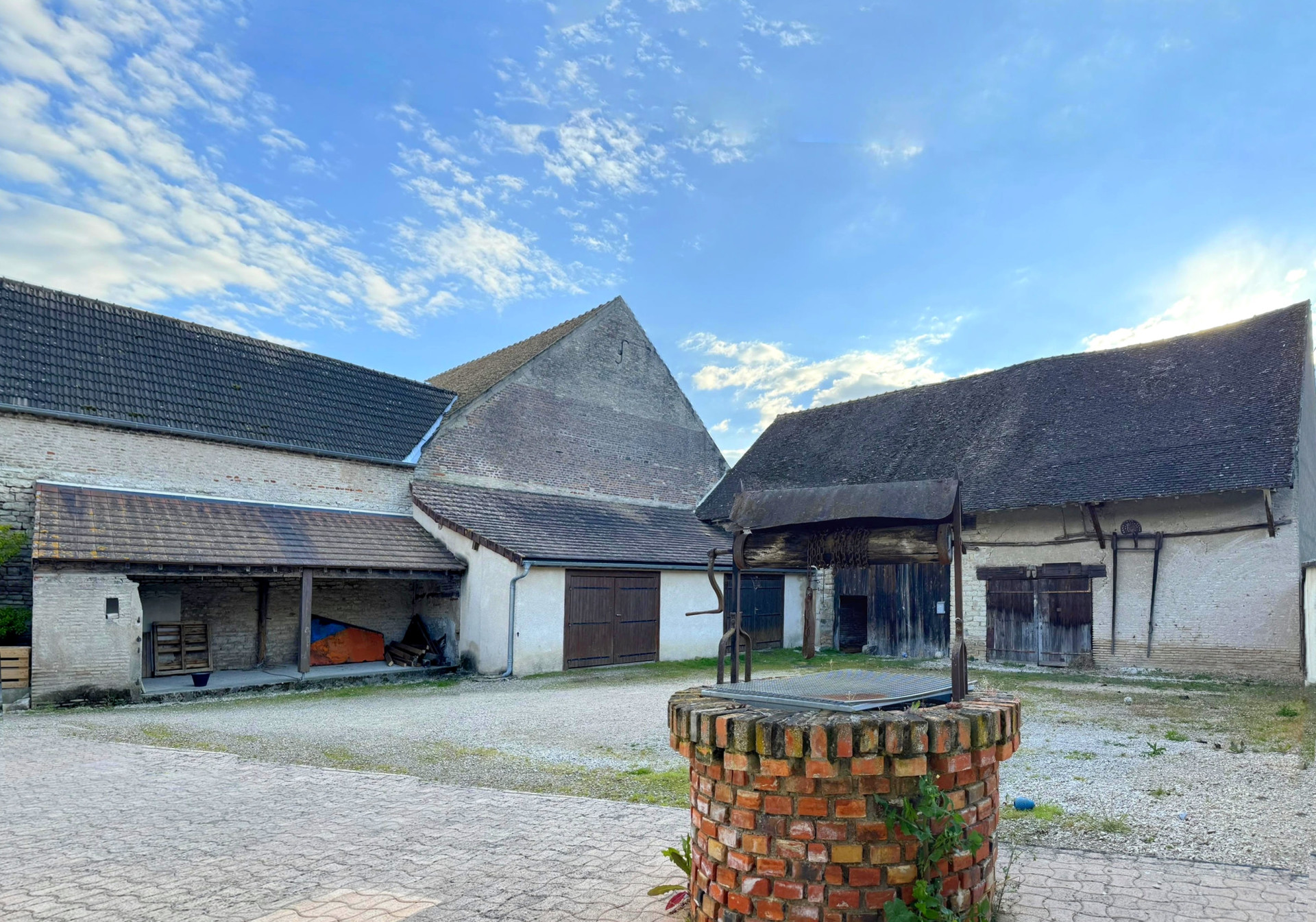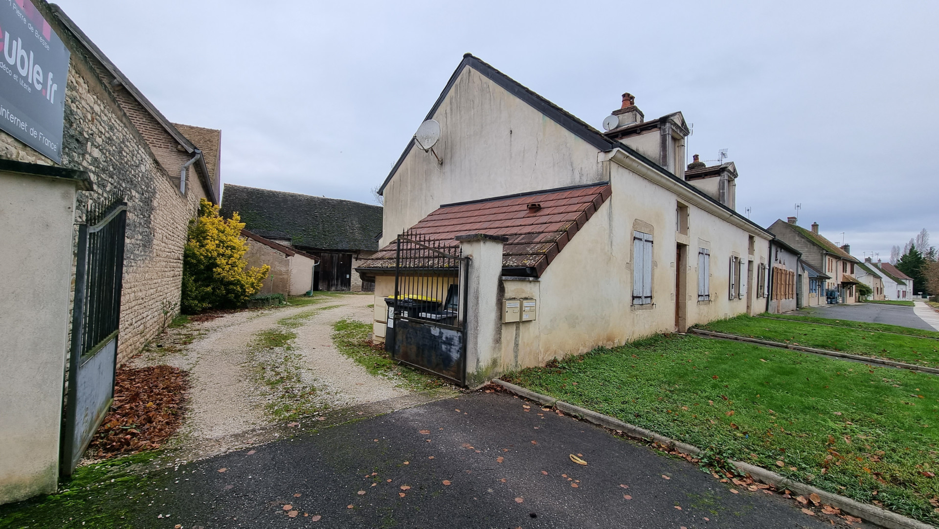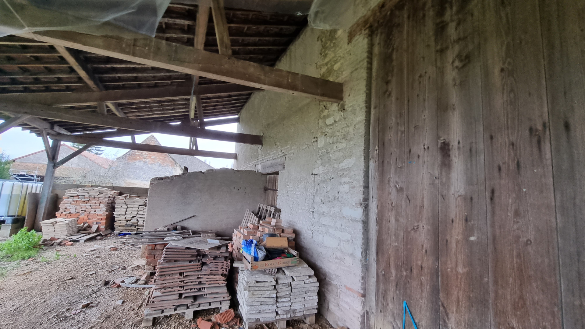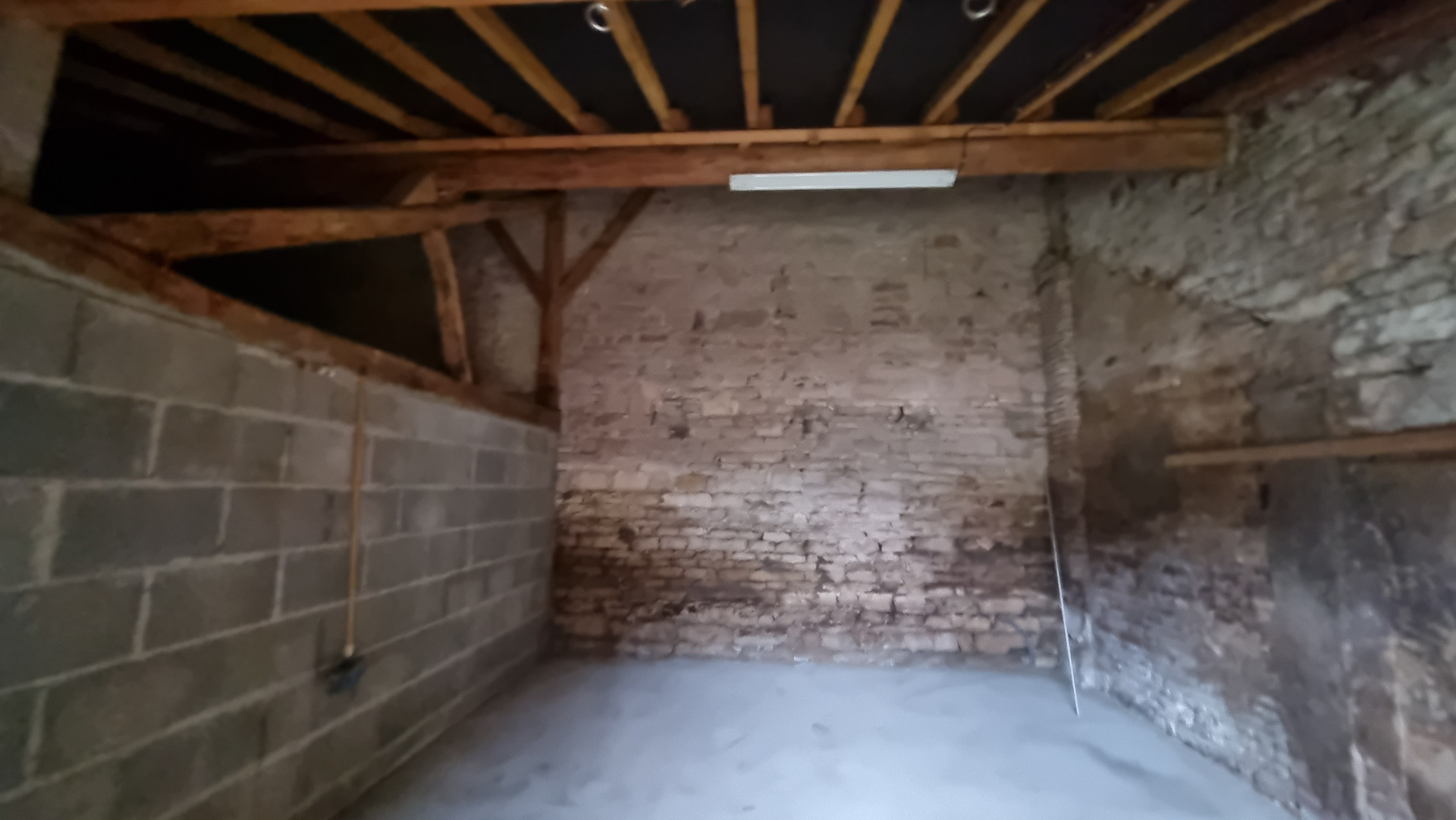 À l?extérieur, dans la cour arrière, se trouvent deux garages d?environ 25 m² chacun, ainsi qu?une grande grange en pierre. Un petit terrain complète l?ensemble, le tout sur une parcelle d?environ 600 m².