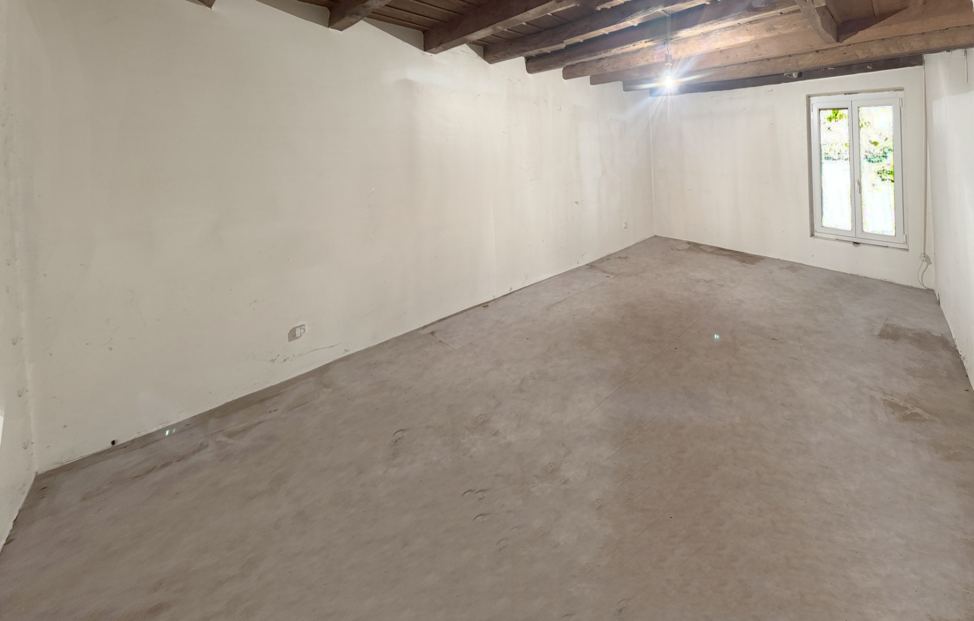 Les huisseries sont principalement en bois, hormis la fenêtre de la chambre qui est en PVC double vitrage, et les murs en briques pleines sont doublés en contre-cloison avec briques plâtrières (sauf cuisine).