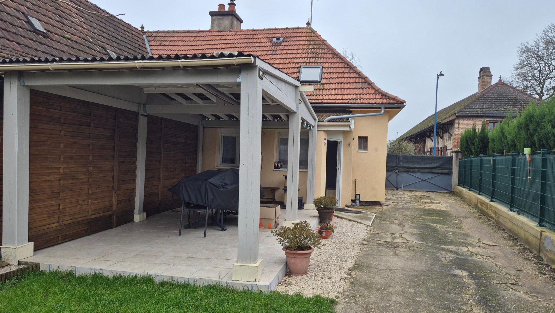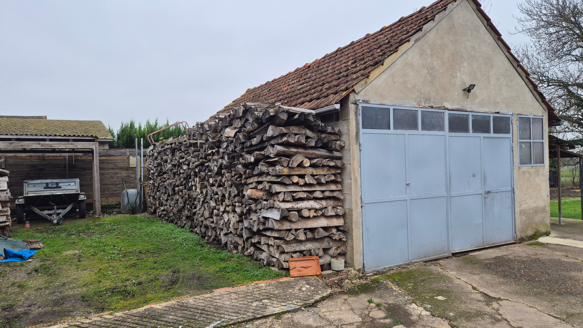 A l'extérieur se trouve une terrasse couverte et carrelée, idéale pour les beaux jours, un grand garage d?environ 40 m², ainsi qu?un jardin agrémenté d?un potager.