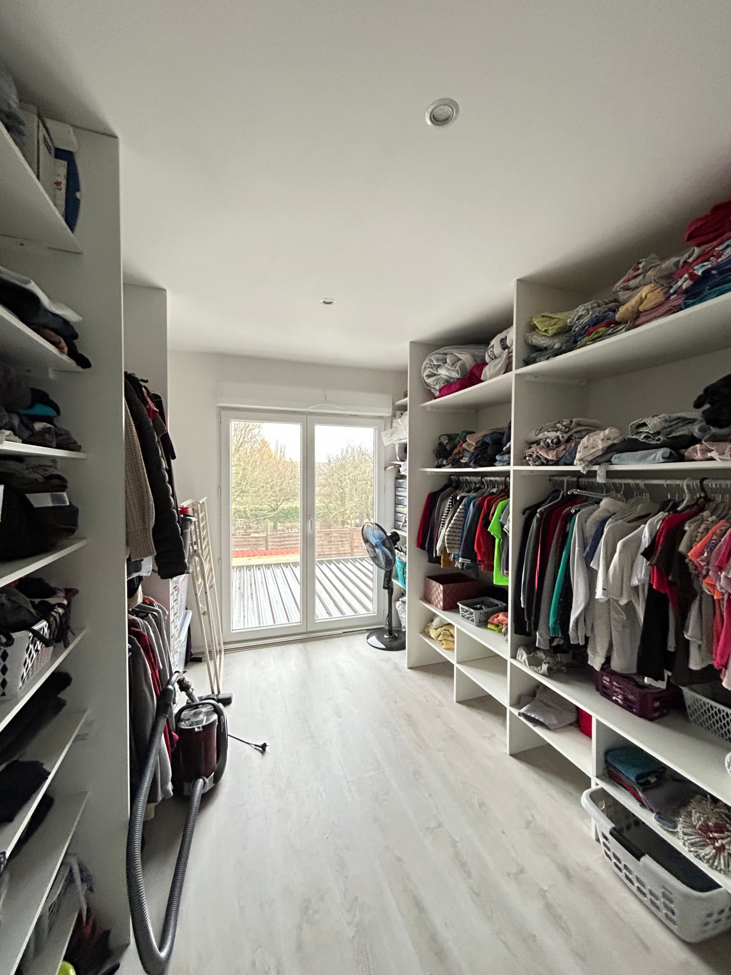 Cette maison offre une entrée de 7,87 m² avec de nombreux placards muraux, une cuisine équipée de 25,43 m² donnant accès sur la terrasse avec piscine, un salon-séjour de 22,82 m², un bureau de 13,57 m² et WC. A l'étage : quatre chambres (11,07 m², 12,06 m², 10,77 m² et 13,57 m²), un dressing de 10,29 m², une salle de bains et eaux de 6,50m², WC séparé.
