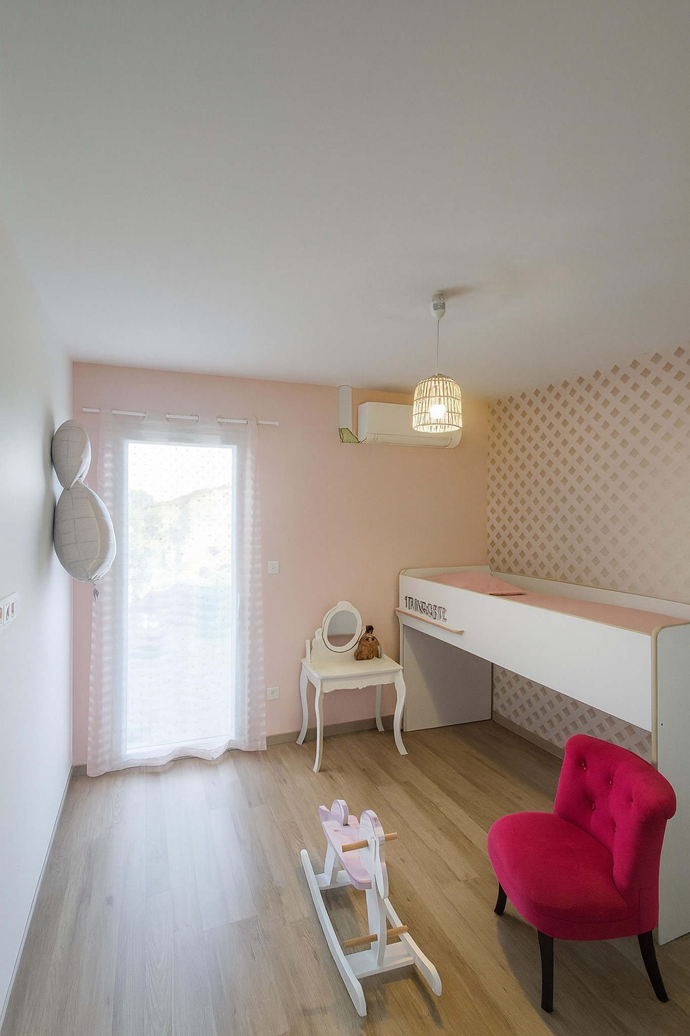 Le chauffage principal avec pompe à chaleur air/air associé à un système de climatisation dans chaque pièce assure un confort régulier toute l?année.