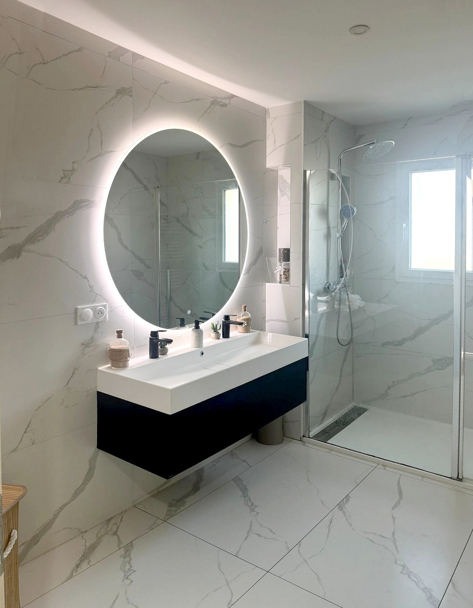 Un garage attenant offre un espace supplémentaire pour stocker ou organiser divers usages.