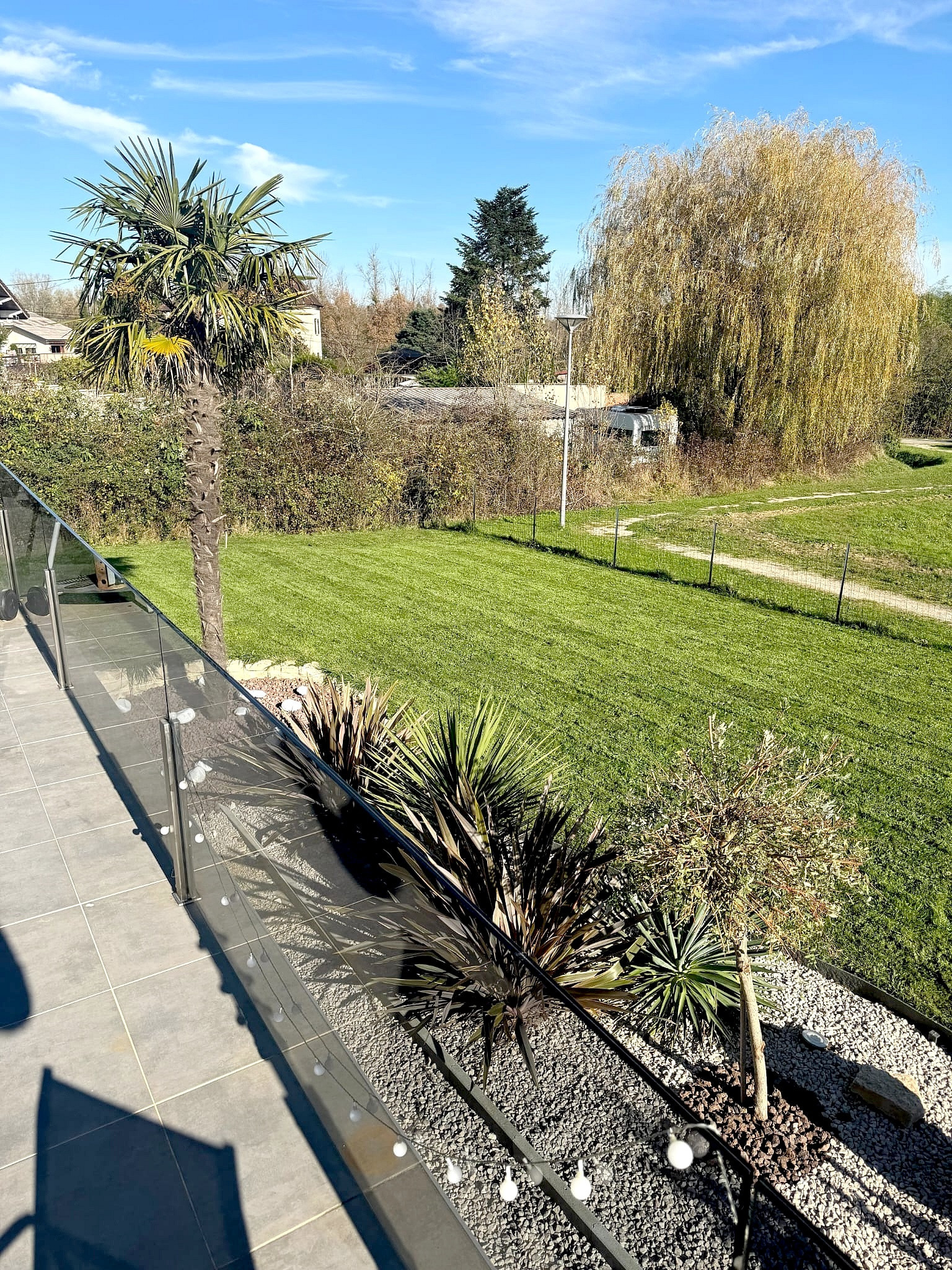 La pièce de vie profite d?une belle ouverture sur l?extérieur, avec un accès direct à une grande terrasse surplombant le jardin. La cuisine, intégrée à l?espace de vie constitué d?un séjour/salle à manger, est organisée autour d?un îlot central. Un cellier/buanderie attenant facilite le rangement et le quotidien.