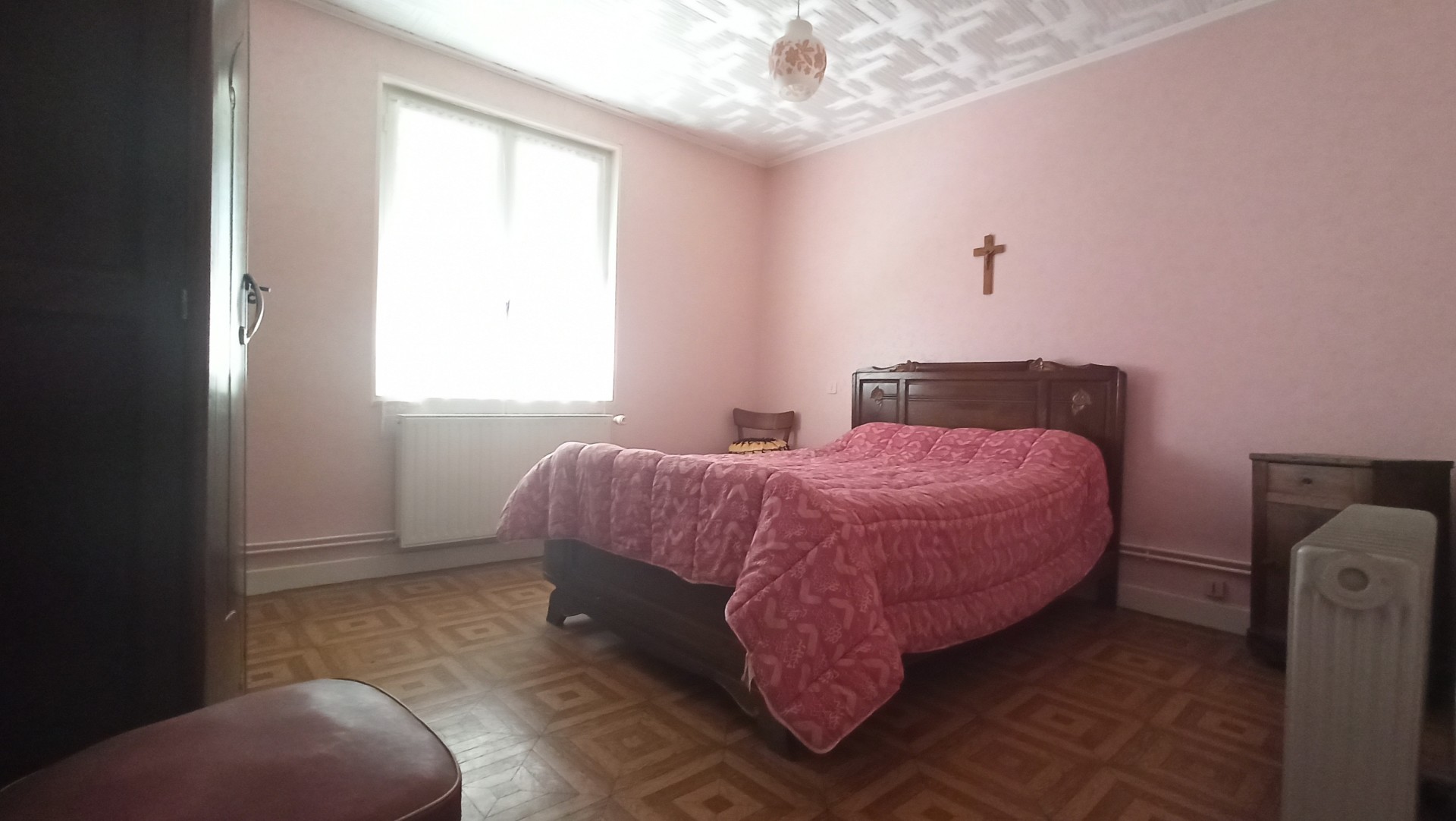 Cette propriété vous offre : une entrée distribuant une cuisine à agencer, séjour de 20 m² possibilité d'extension, dégagement desservant 3 belles chambres de plus de 12 m², salle de bains, WC, cellier, garage / chaufferie. Possibilité d'aménager les combles sur dalle béton. Cour, le tout sur un joli terrain d'environ 1200 m².
