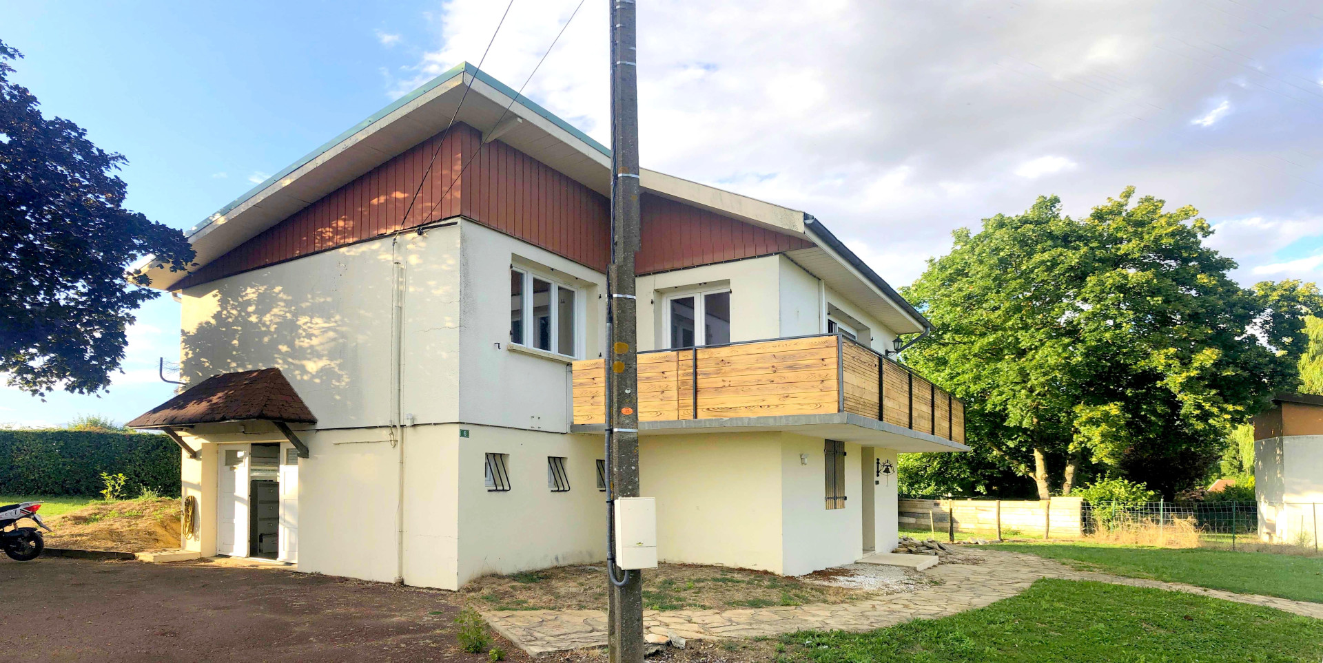 À Charette-Varennes, dans une impasse discrète, nous vous présentons cette singulière maison au toit asymétrique, d'une surface habitable de 85 m², élevée sur un sous-sol aménagé avec garage.