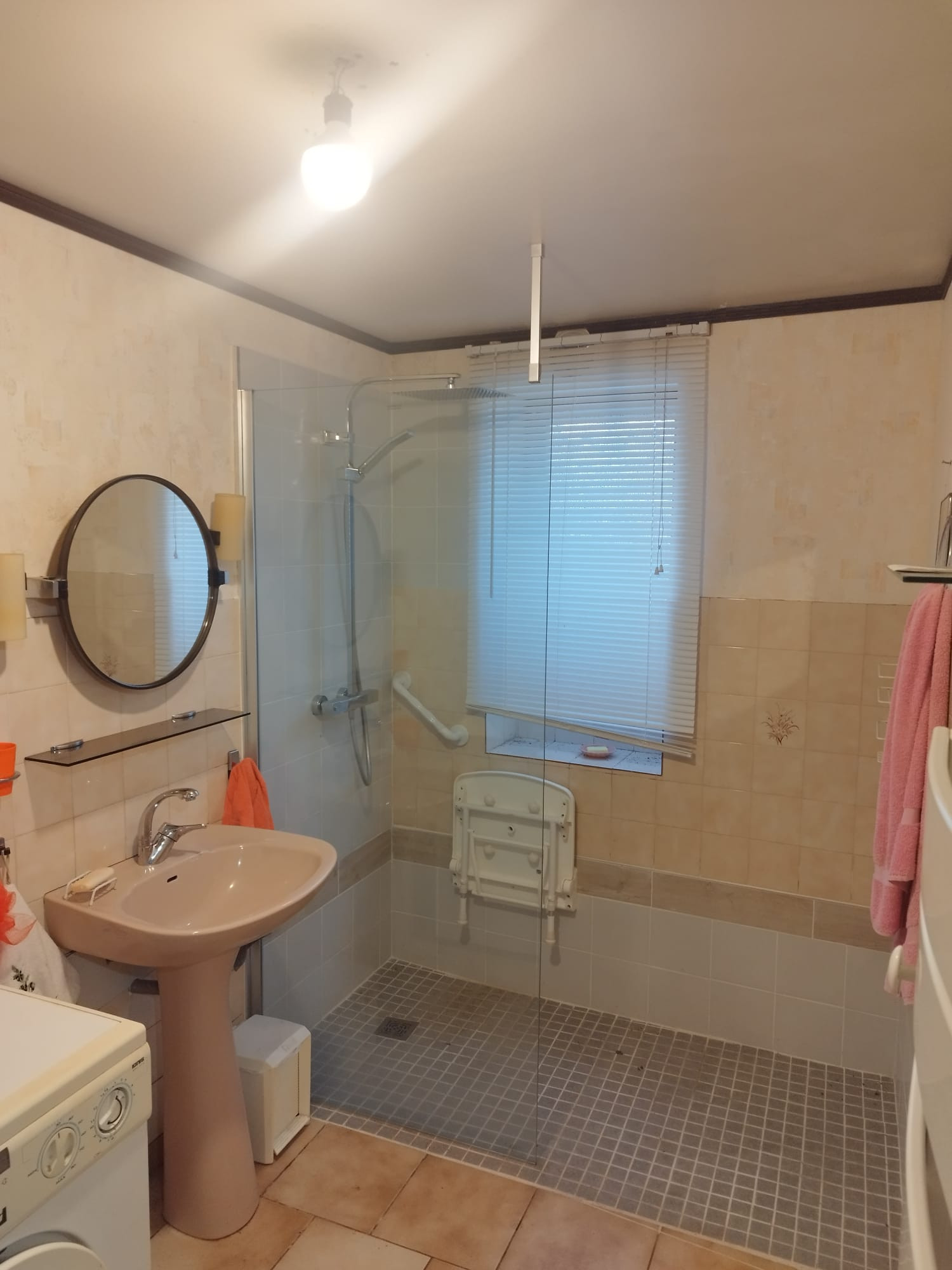 Elle se compose d'une entrée pouvant servir de bureau donnant accès à deux chambres, une cuisine équipée et aménagée, une grande pièce de 40 m², salle à manger/salon avec cheminée insert, une salle d'eau et WC séparés.