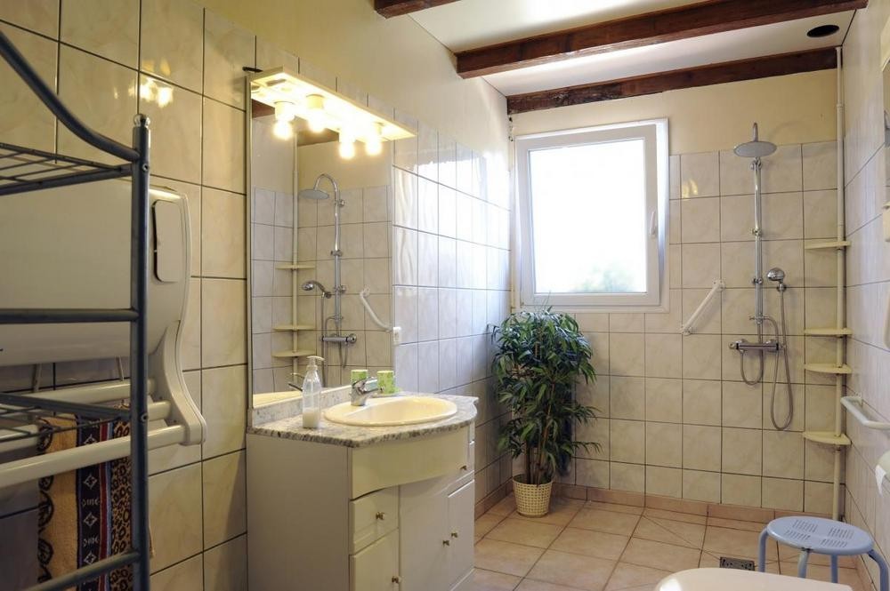 Au rez-de-chaussée, un bel espace de vie vous accueille, constitué d'une cuisine équipée et d'un salon /salle de séjour donnant sur une grande terrasse de 40 m² disposant d'un store ban électrique. Cette terrasse est associée à une autre plus petite, couverte, faisant office de cuisine d'été avec vue sur la partie jardin. S'ensuit deux chambres spacieuses, une grande salle d'eau et un WC séparé, tous quatre adaptés aux personnes à mobilités réduites.