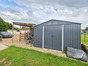 A l'extérieur, le terrain de 948 m², en partie clôturé, offre une belle surface de verdure à l'arrière ainsi qu'un espace cour à l'avant. Un abri de jardin avec appentis est également présent.