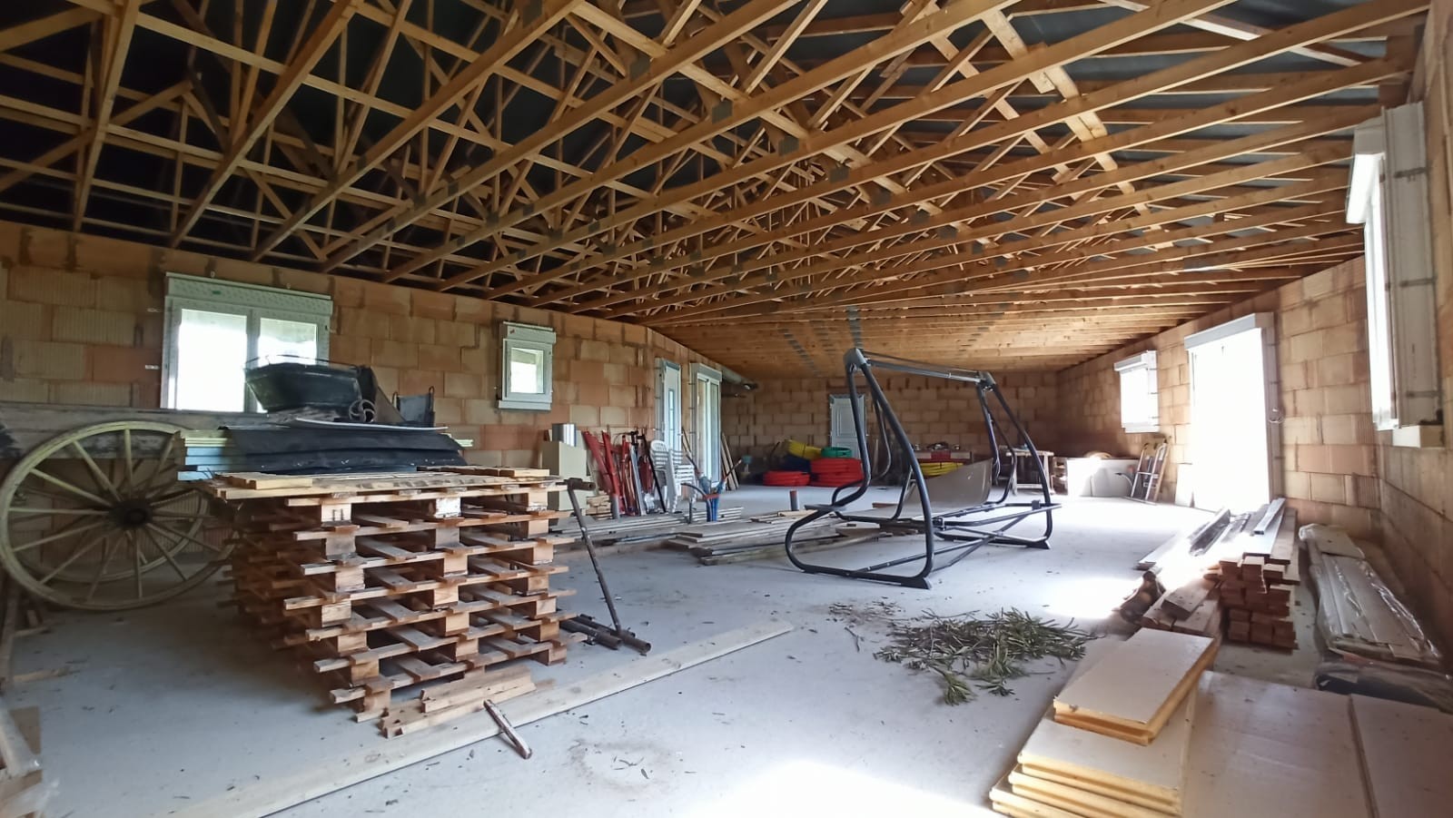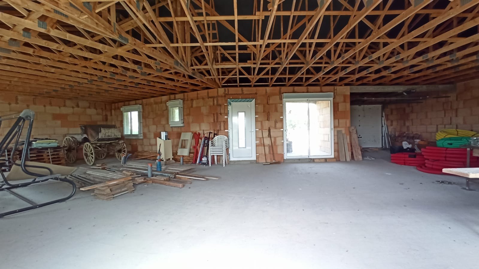 Il reste aux futurs acquéreurs à terminer : l'assainissement non collectif, le raccordement à l'eau et à l'électricité (déjà présents à l'entrée du terrain), les finitions intérieures (plomberie, électricité, chauffage, cloisons, isolation, chapes, carrelages), et les enduits de façade.