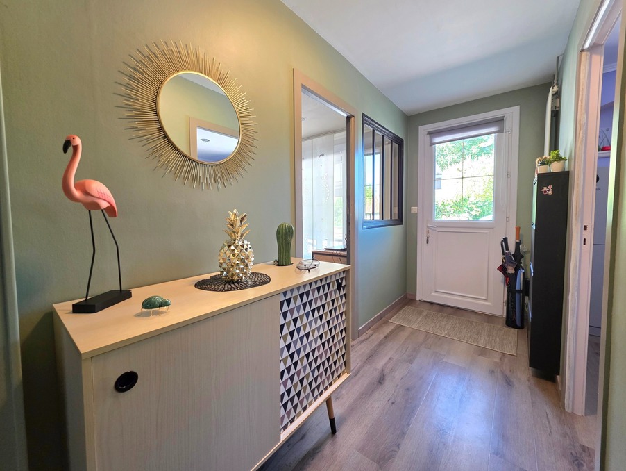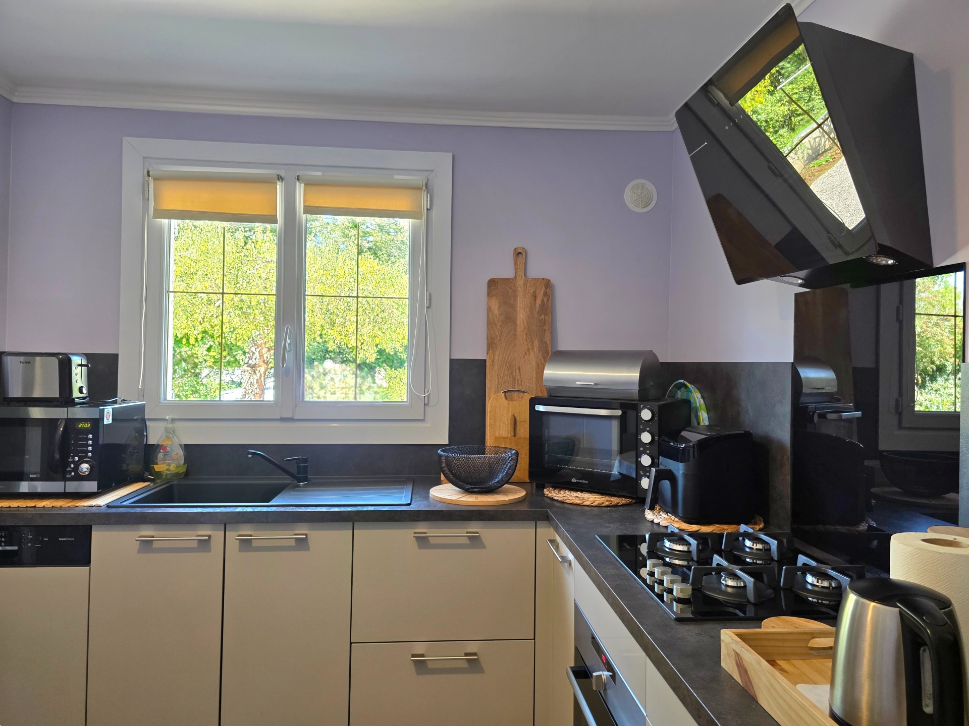 Construit dans les années 1980, le bien a été entretenu avec soin et offre une belle organisation de ses espaces. Vous découvrirez un hall d'entrée accueillant, une cuisine équipée en 2024 par Darty, ainsi qu'un salon / séjour lumineux de plus de 32 m², traversant et ouvert sur l'extérieur, avec accès direct à la terrasse et une vue dégagée sur le jardin arboré.