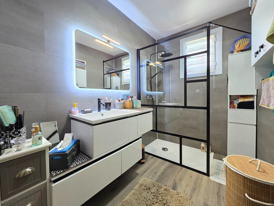 Un dégagement dessert deux chambres confortables de 11,26 m² et 10,89 m², une salle d'eau récente avec douche à l'italienne et sèche serviette puis des toilettes indépendants. La maison dispose également d'un garage attenant de 24 m² et d'un second garage non attenant de 30 m².