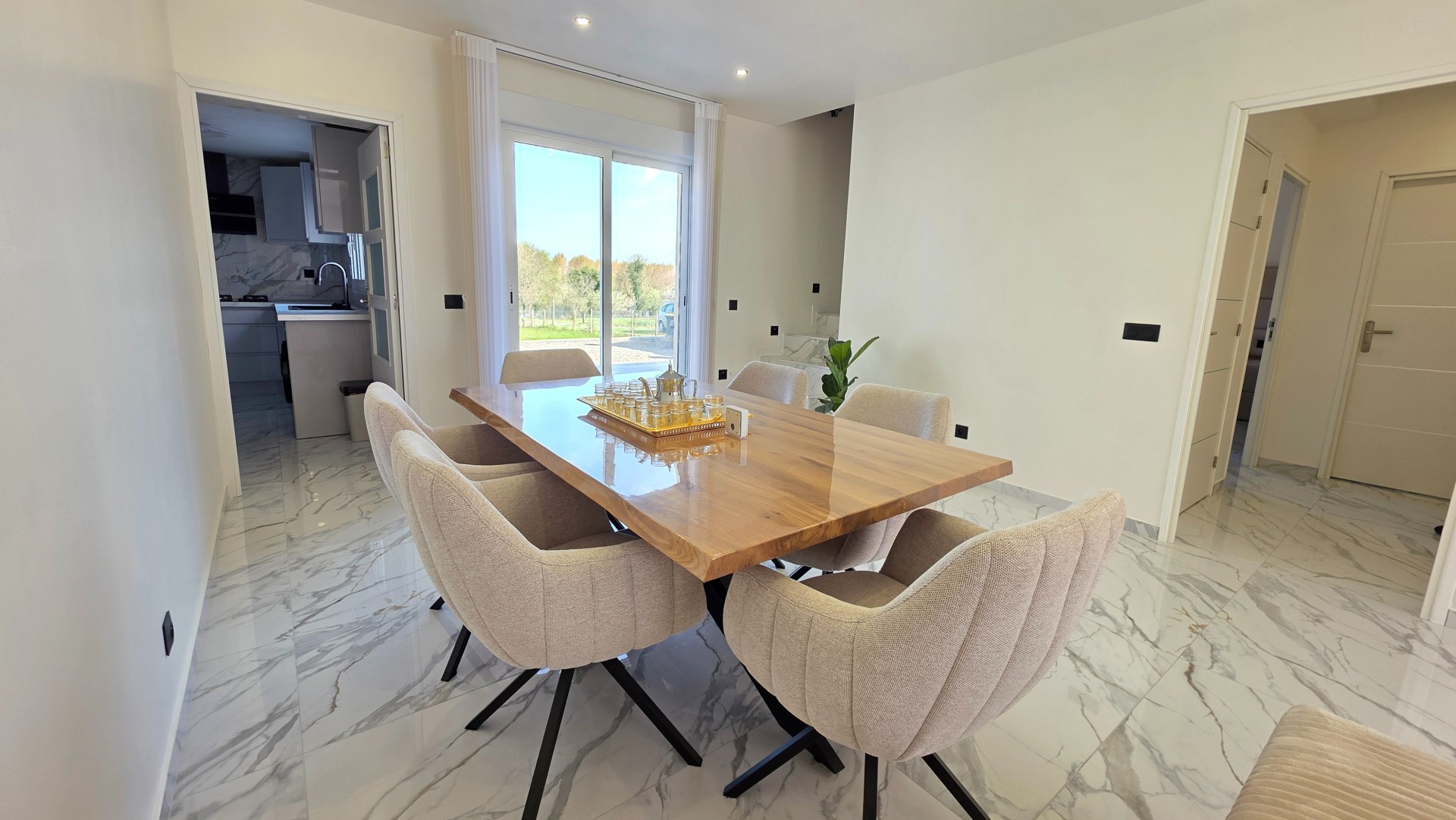 Dès l'entrée, vous découvrirez une atmosphère soignée et contemporaine, où chaque détail a été pensé avec exigence. La cuisine, entièrement équipée et installée en 2025 avec des équipements de qualité (électroménager Bosch et Whirlpool, garantie 10 ans), bénéficie d'une agréable vue sur l'extérieur.