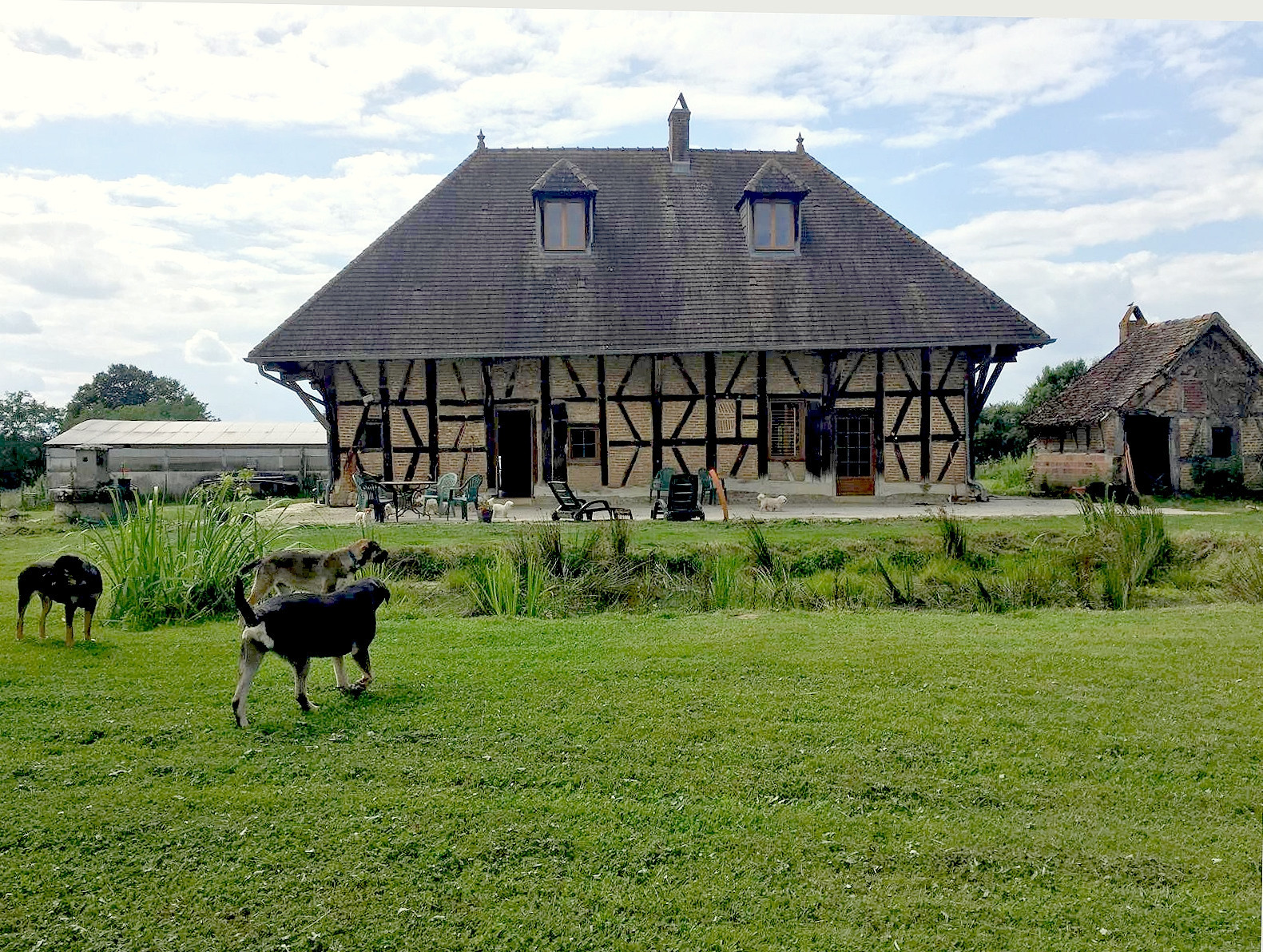 Sur le vaste terrain de 54 674 m² (près de 5.5 ha) sont disposés un hangar, une écurie avec 10 box à chevaux et un étang de 9 000?m².