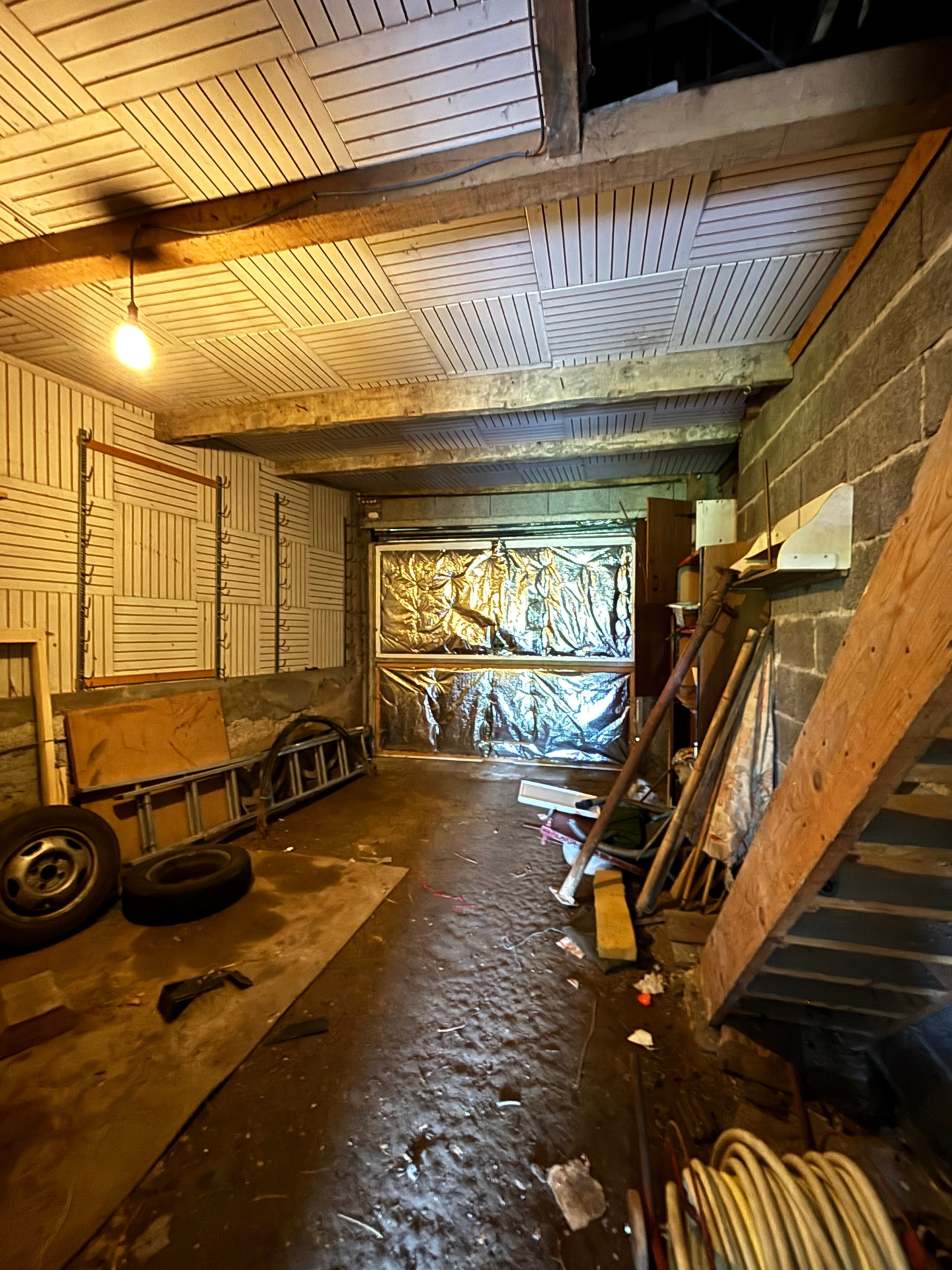 Deux garages permettant le stationnement de votre voiture et un espace de bricolage. Une terrasse couverte, idéale pour vos repas en extérieur à l?abri des intempéries.