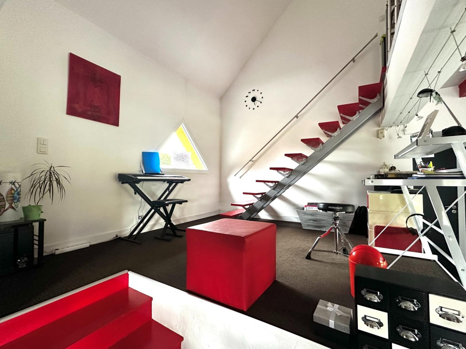 Un escalier design vous mène à l'étage où une mezzanine dessert deux chambres supplémentaires, dont une avec pièce dressing, un bureau, une salle de bains et un second WC.