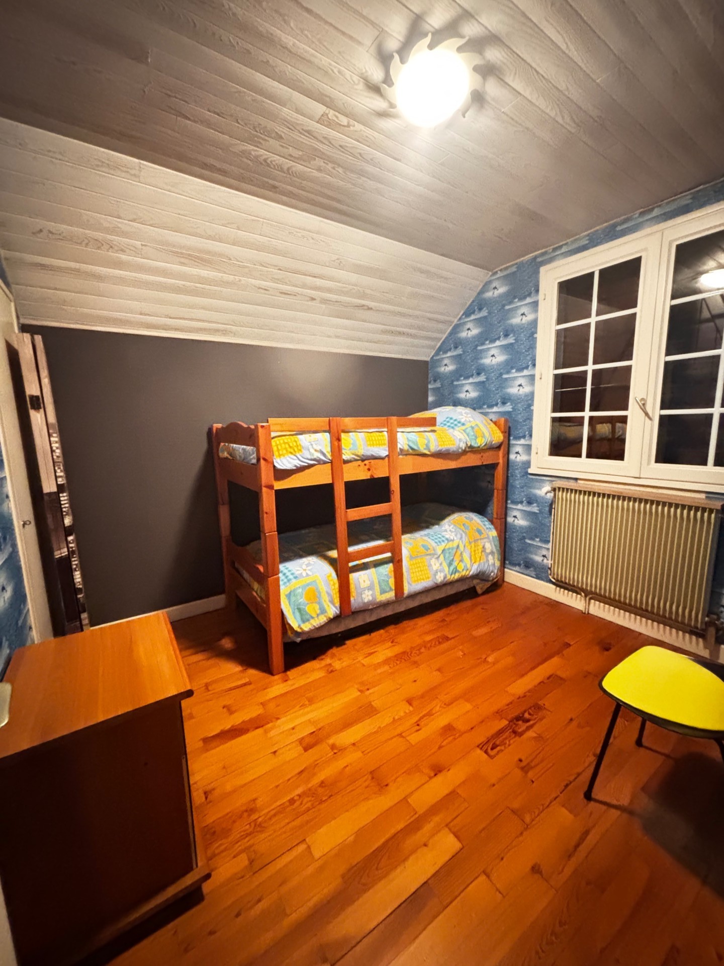 A l'étage, un palier dessert deux chambres avec rangements, parfaites pour les enfants, un espace invités ou un bureau.