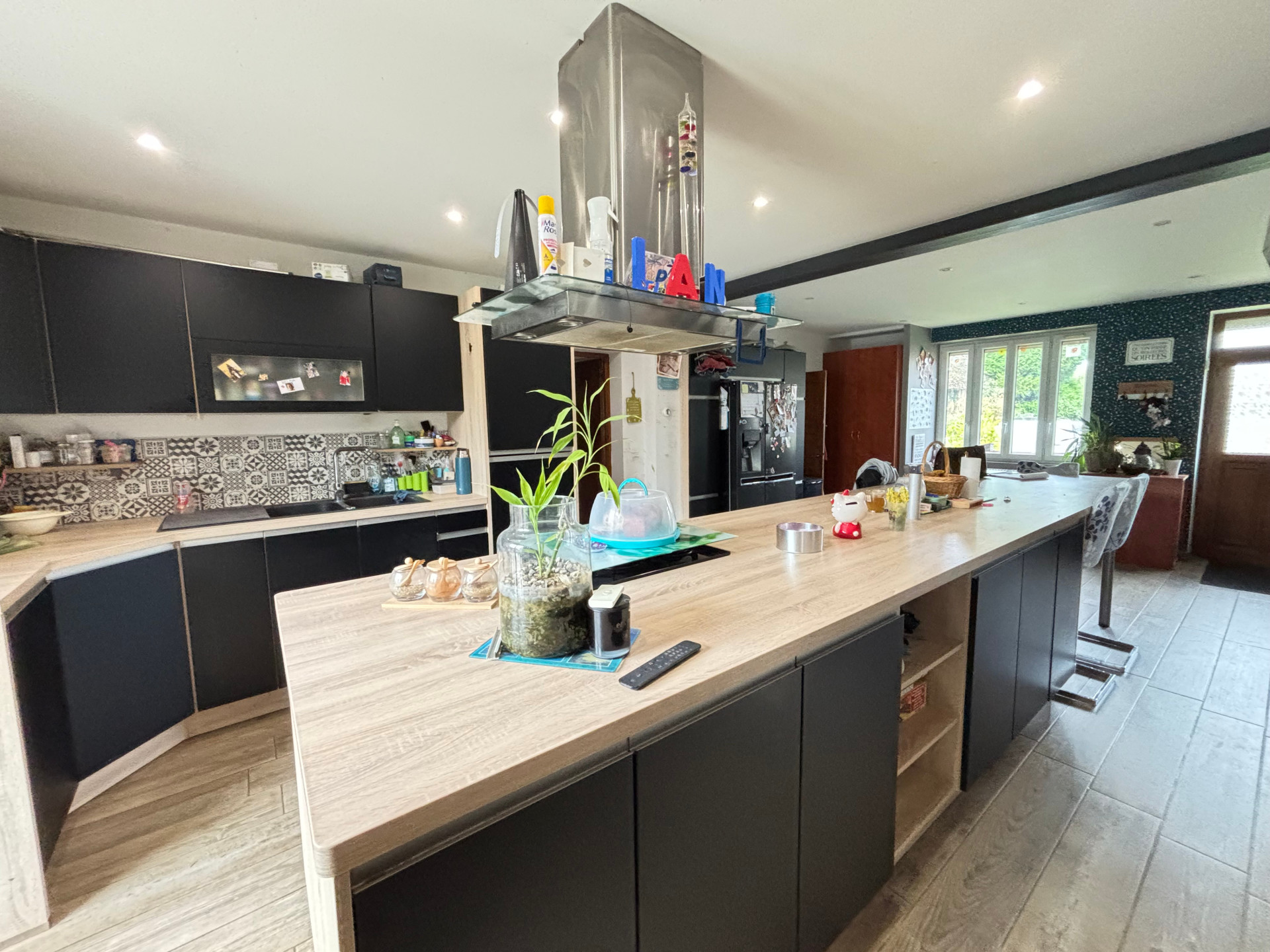 Elle offre en rez de chaussée, une grande cuisine équipée et aménagée, idéale pour les moments de convivialité, en partie ouverte sur une belle pièce de vie lumineuse comprenant un espace salle à manger et un salon chaleureux, une vaste salle de jeux, une salle d'eau (baignoire et douche), un WC.