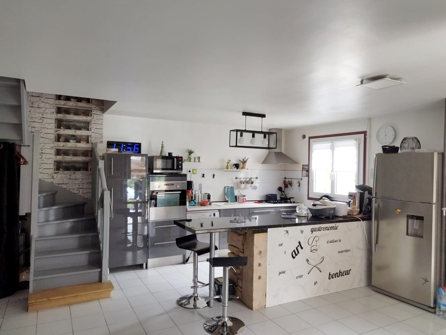 Cette maison vous offre une belle véranda de 25,33 m² claire et spacieuse avec vue sur le jardin, donnant accès sur une cuisine équipée-aménagée de 34,68 m² avec de grands placards de rangement, et d'un séjour/salon de 29,79 m² possédant une cheminée insert au bois. Huisseries PVC double vitrage, chauffage central au fuel.