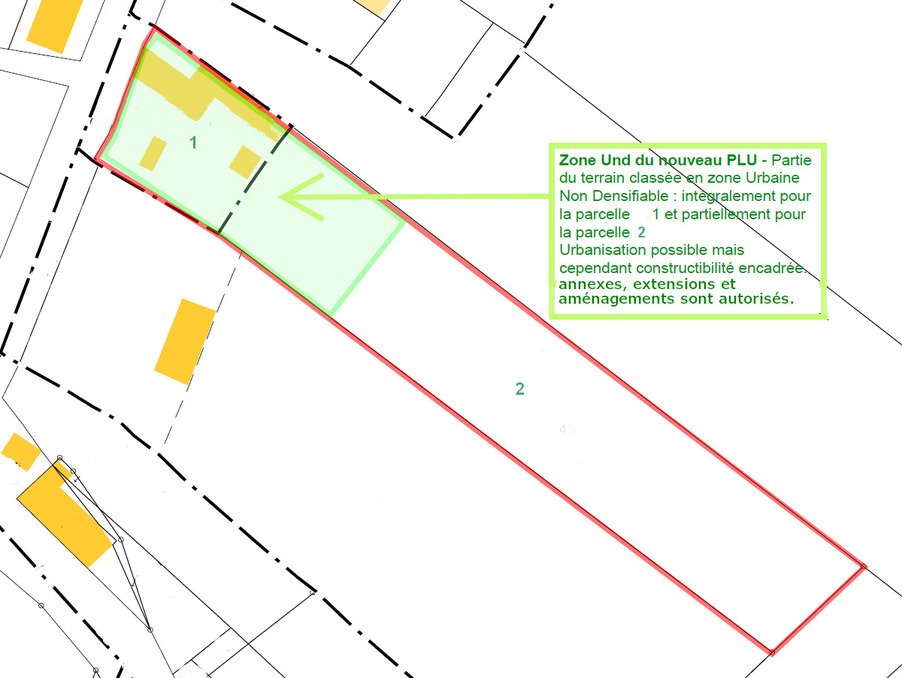L'ensemble est édifié sur une parcelle généreuse de 4 824 m². Selon le PLUi en vigueur (zone Und), environ 1 710 m² du terrain permettent d'envisager des extensions ou des aménagements de loisirs (piscine, pool house, dépendance légère ou maison de jardin).