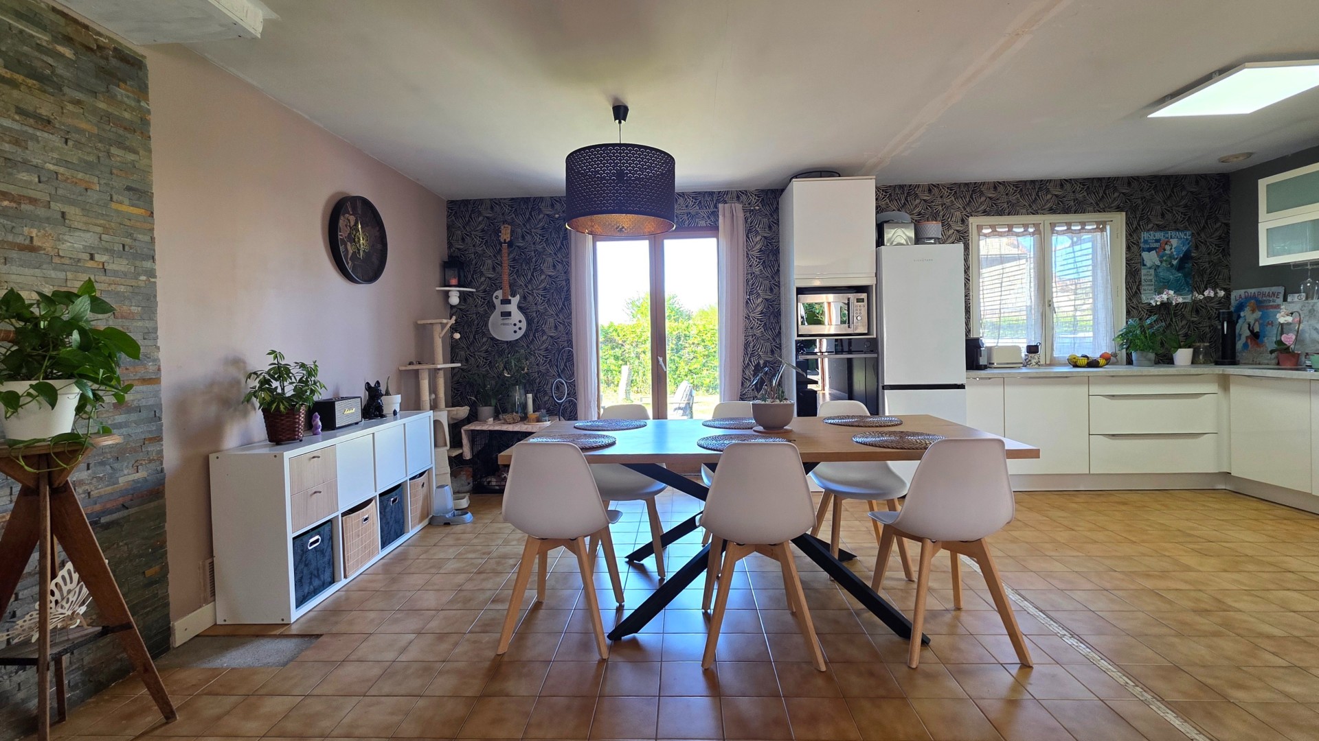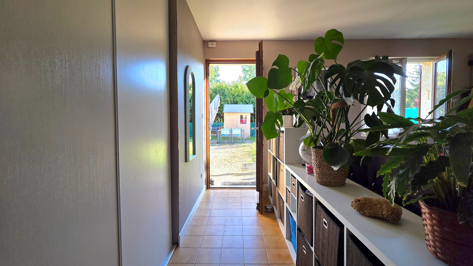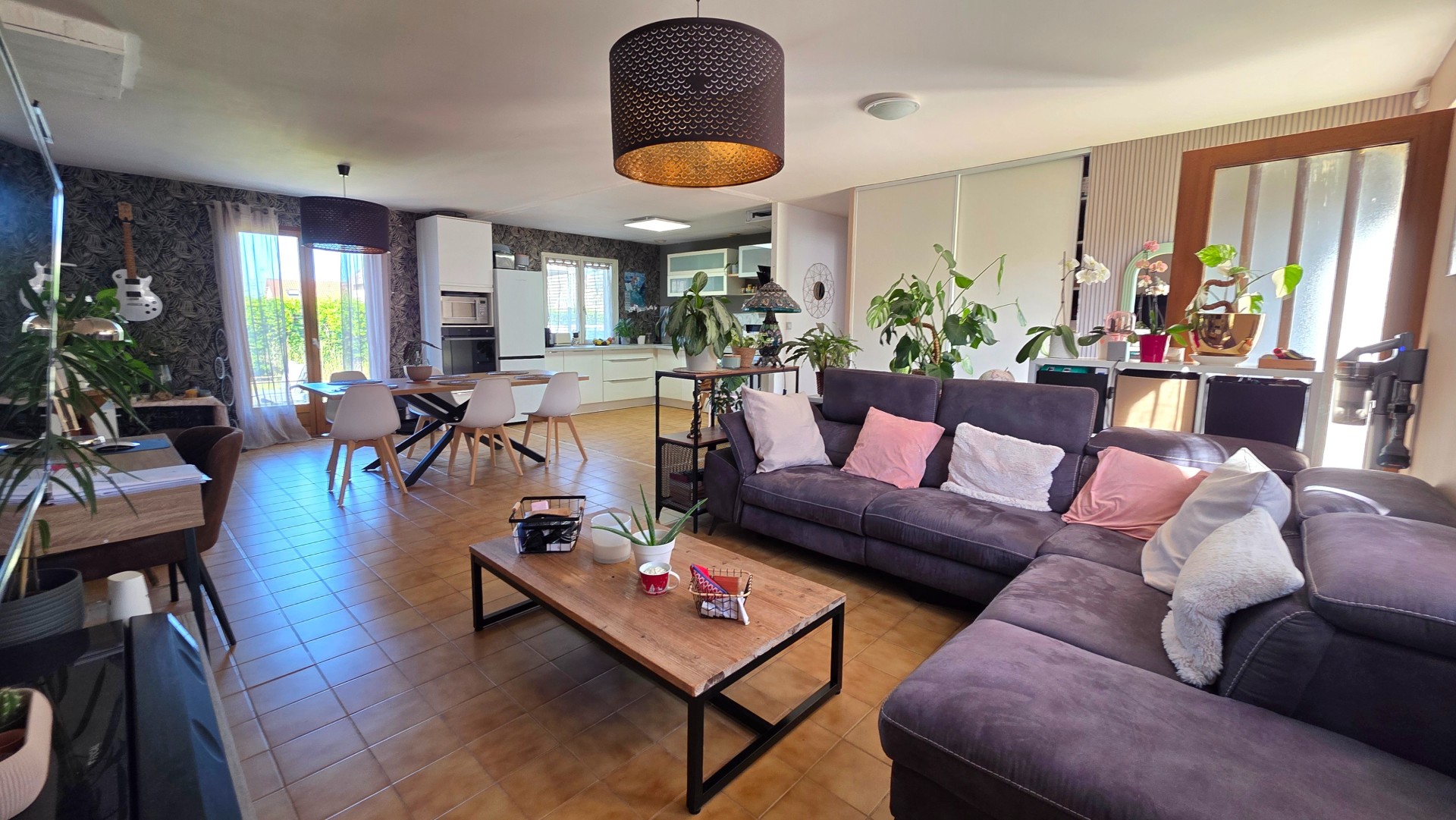 Dès l'entrée, vous découvrirez un hall accueillant avec placard de rangement, ouvrant sur une belle pièce de vie traversante d'environ 43 m², baignée de lumière naturelle et offrant un espace à la fois convivial et fonctionnel. La cuisine, entièrement équipée et récemment rénovée en 2026, est ouverte sur le salon-séjour et s?intègre parfaitement à l'ensemble, avec un accès direct aux extérieurs, pour une vie dedans/dehors des plus agréables.