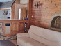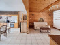 Elle se compose au rez-de-chaussée d'une entrée, un salon/séjour, une grande pièce de vie d'inspiration bressane et chalet avec ses briquettes de parement et son lambris bois, avec cuisine aménagée et équipée ouverte sur la salle à manger, offrant un accès direct à la terrasse, une salle de bain avec WC, ainsi qu'une chambre de plain-pied.
