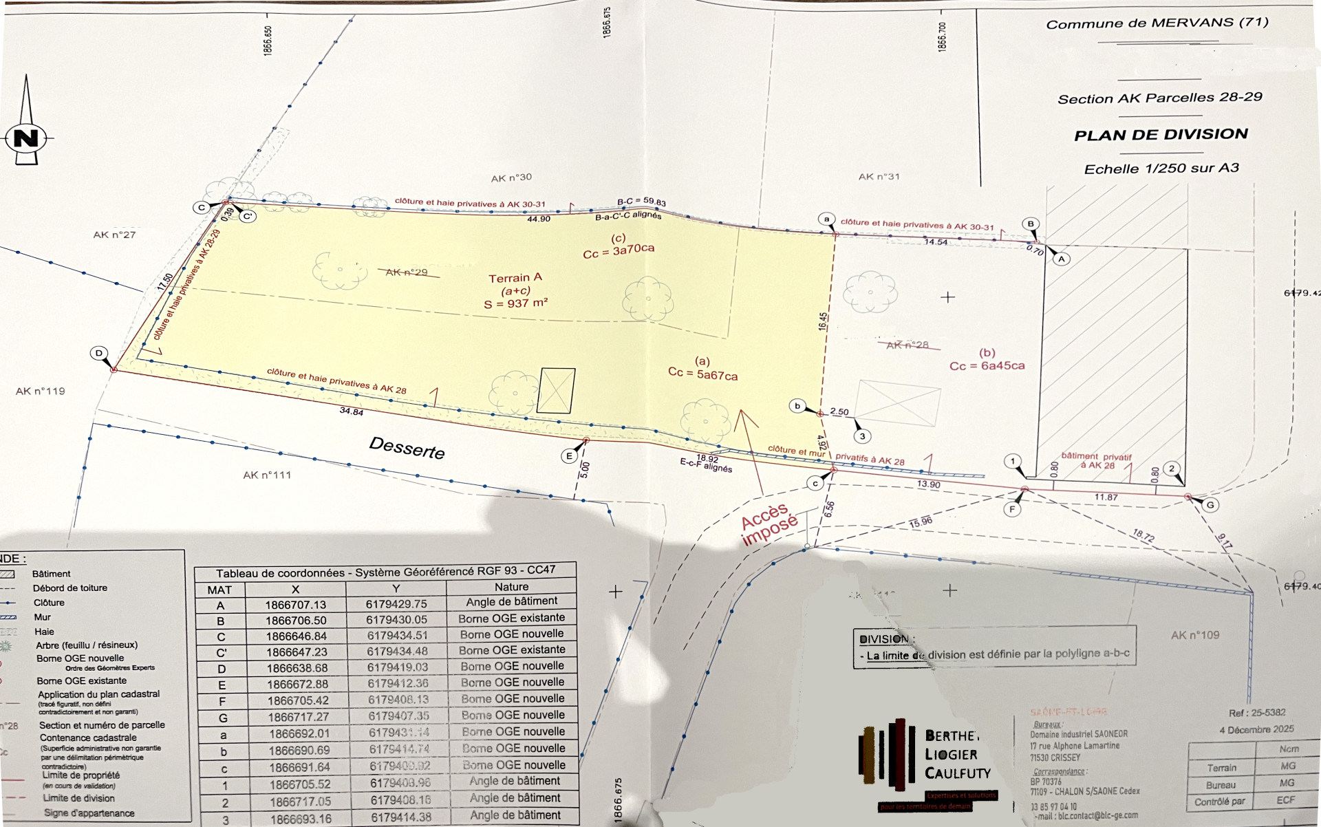 Certificat d'Urbanisme opérationnel déjà délivré, ainsi qu'une déclaration préalable de division et une étude de sol avant projet de type G1 (obligatoire avant achat) et même G2 (gratuite bien que normalement à la charge des acquéreurs).